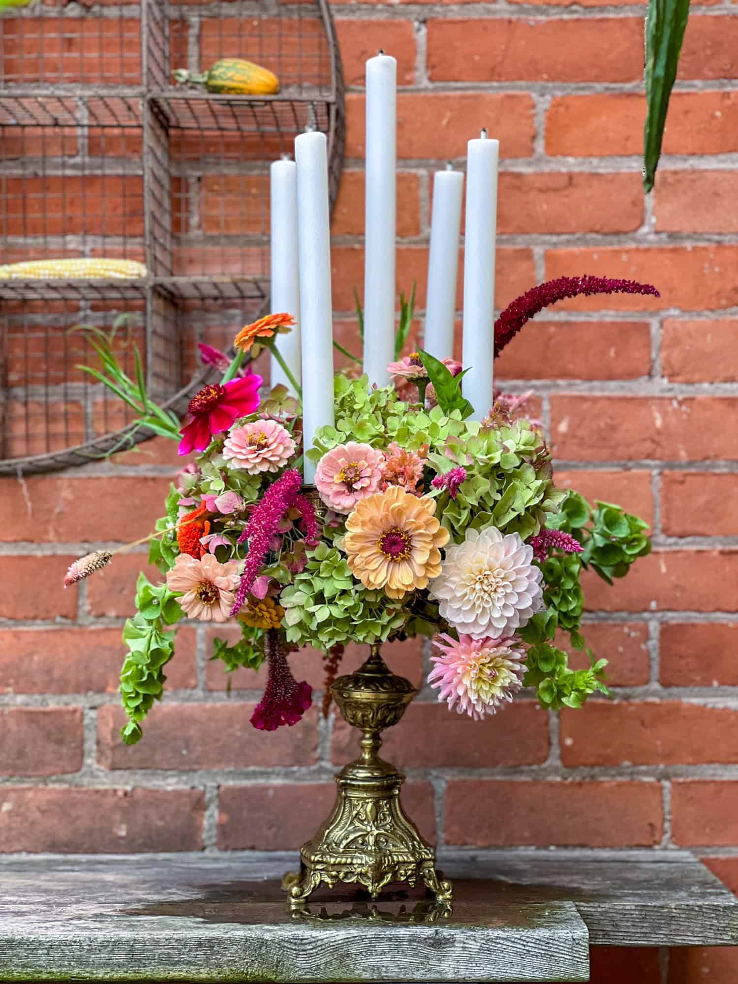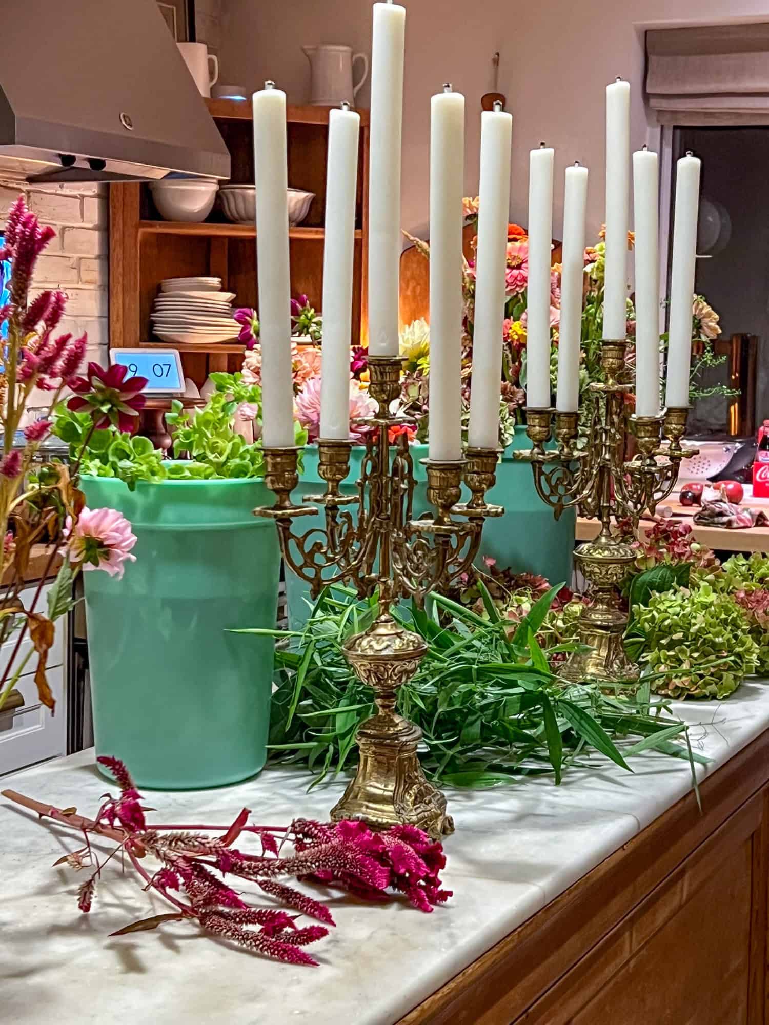Last Saturday night I made the flower arrangements for Sunday's Thanksgiving dinner. Two for the dining table, and another 5 to give away to guests. I'll share the full table soon, but for now; a quick look. The flowers were far too much. Wearing a tiara to a football game too much.
