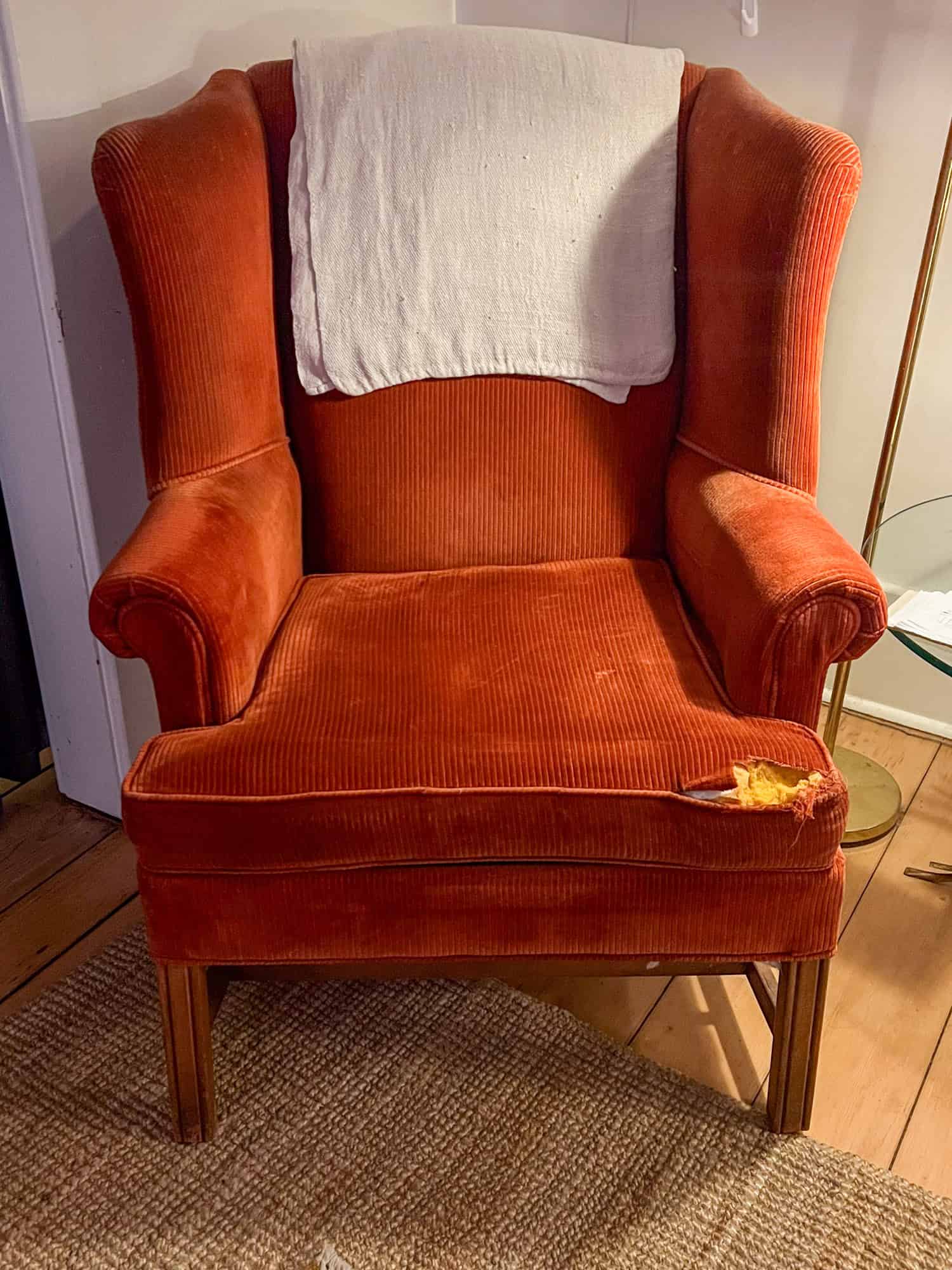 This week I noticed one of the seams on the seat cushion of my flea market wingback had popped.