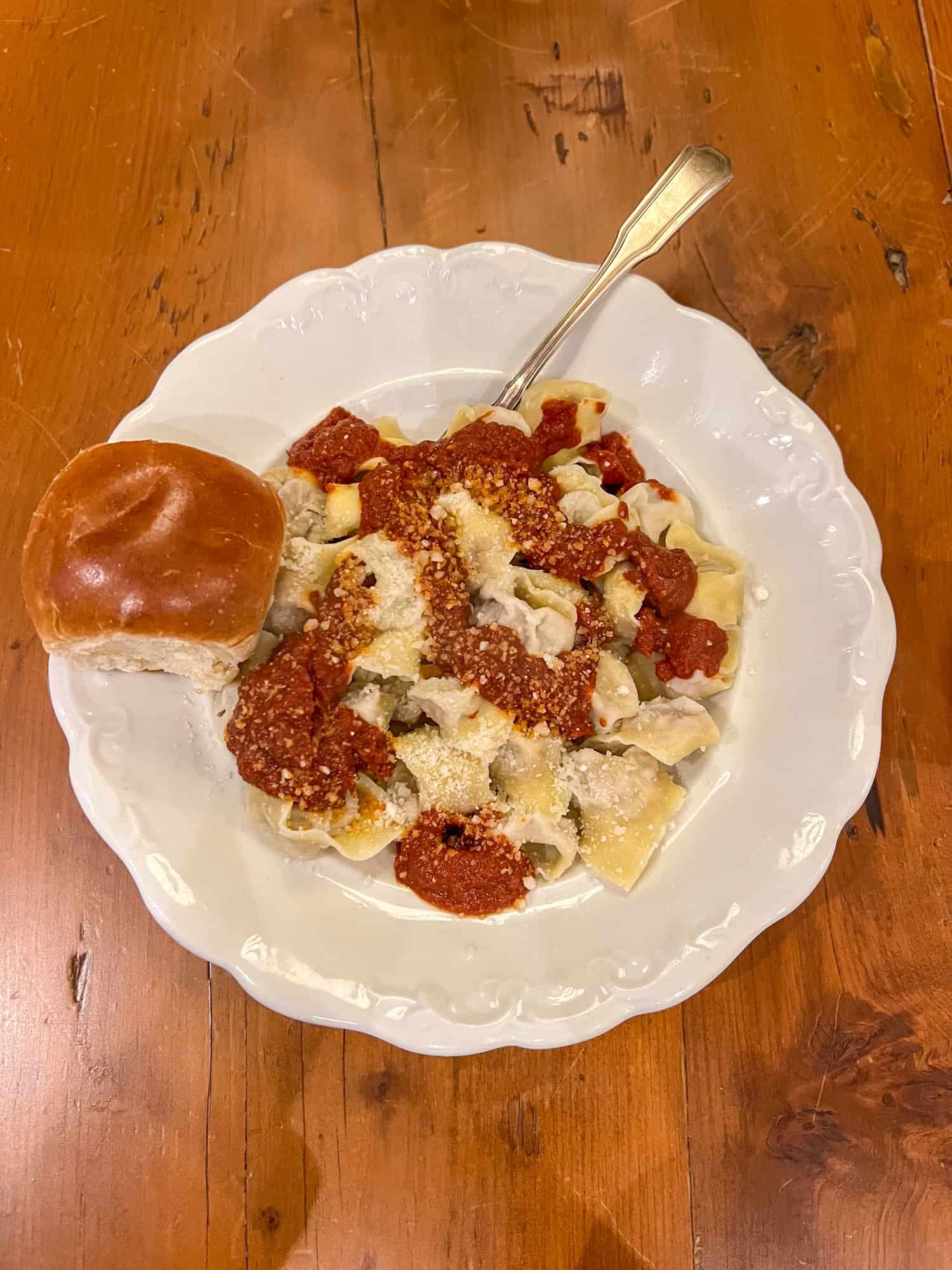 I made homemade tortellini with roasted tomato sauce, in 10 minutes.